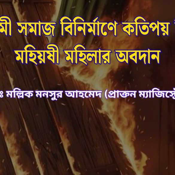 হজরত ইসা(আঃ)কে আল্লাহ তায়ালা তুলে নেয়ার প্রায় দু’হাজার বছর পরে আরব দেশের সেই হজরত ইসমাইলের মহিয়সী মাতা হজরত হাজেরার পূণ্যস্মৃতি বিজড়িত মক্কা নগরীতে জন্মগ্রহণ করেন সর্বশেষ মহানবী তথা ইসলামী সমাজ নির্মাণের বিশ্বনবী এজরত মুহাম্মদ (সাঃ) তাঁর পূণ্যময়ী মাতা হজরত আমিনার তথা আমরা খুব কমই মনে করে থাকি অথচ ইসলামী সমাজ নির্মাণে তাঁর অবদান ছিল অনেক বেশী। হজরত মুহাম্মদ (সাঃ) সেই হজরত ইব্রাহীম- ইসমাইল (আঃ) কর্তৃক নির্মিত কা’বা শরীফ কেন্দ্রিক পবিত্র একা শহরেই ইসলামী সমাজ বিনির্মাণের আন্দোলনের সুচনায় শয়তানের প্রতিভূ বনি উমাইয়া গোত্রের কুরাইশ সম্প্রদায় তীব্র বিরোধীতা শুরু করে বিশ্বনবী হযরত মুহম্মদ (সাঃ) কর্তৃক সুচিত ইসলামী সমাজ বির্নিমানের আন্দোলনে প্রত্যক্ষভাবে সাহায্য-সহযোগিতা করে। মহিলাদের মধ্যে যারা সর্বাপেক্ষা বেশী অনুকরণীয় অবদান ও আদর্শ রেখেছিলেন তাঁরা ছিলেন পরম পূণ্যবতী প্রাতঃস্মরণীয়া হজরত খাদিজাতুল কুবরা (আঃ) এবং তারই গর্ভজাত কন্যা হজরত ফাতিমা জাহরা (আঃ)। তাঁরা আরবের কাফের স¤প্রদায়ের তথা বনী উমাইয়া গোত্র প্রধানের সর্বধ্বংসী বিরোধিতা ও আক্রমনের মুখে মহানবী হজরত মুহাম্মদ (সাঃ)কে ইসলামী আন্দোলনে সাহায্য করেন সে ছিল এক কাল জয়ী ইতিহাস, স্বর্ণাক্ষরে লিখিত রয়েছে বিশ্ববাসীর গবেষণার জন্য। বিশ্বনবী স্বয়ং এই সব মহিয়ষী মহিলার অবদানের স্বীকৃতি দিয়েছেন। নীচে বর্ণিত হাদীসে তা সুন্দরভাবে বর্ণিত হয়েছে। আল্লাহর রাসুল (সাঃ) বলেন, “বেহেশতবাসিনী মহিলাদের মধ্যে সর্বোত্তম হচ্ছেন খুওয়াইলিদ তনয়া খাদিজা, মুহম্মদ (সাঃ) তনয়া ফাতিমা, ইমরান তনয়া মরিয়ম এবং ফেরাউনের স্ত্রী মুজাহিম তনয়া আসিয়া।”