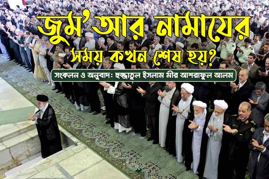 উপরে জুম’আর নামাযের শেষ সময় ভিত্তিক আলোচনা করা হয়েছে যা সংগৃহীত একটি প্রবন্ধের আলোকে অনুদিত। (জুম’আর অভিধান, আয়াতুল্লাহ্ মোহাম্মদ মোহাম্মদী রেইশাহরী (রহ.), প্রকাশের তারিখ: ১৩৯৪ পৃষ্ঠা ২৯৫ থেকে ২৯৭ পৃষ্ঠা পর্যন্ত জুম’আর নামাযের সময় সম্পর্কে ফকিহ্গণের মতামত) এ পর্যায়ে যেহেতু আয়াতুল্লাহ্ খামেনেয়ী (দা.বা.) ও আয়াতুল্লাহ্ সিস্তানীর (দাবা.) ফিকাহগত নির্দেশনা বেশী অনুসরণ করা হয়ে থাকে তাই নিম্ন তাদের দু’জনের ফতোয়াকে আলাদাভাবে তুলে ধরছি: