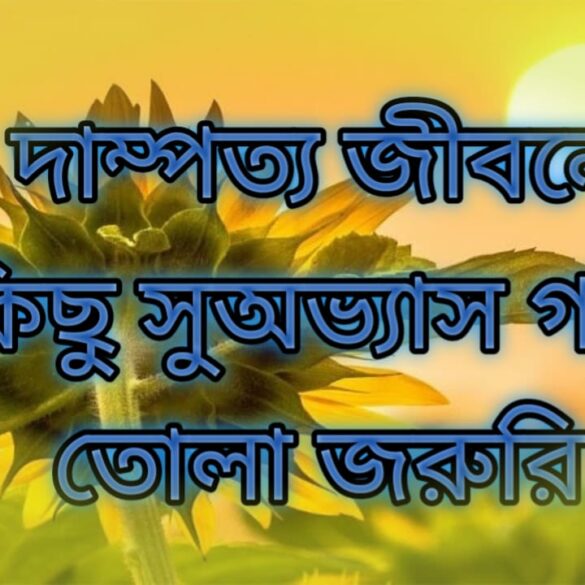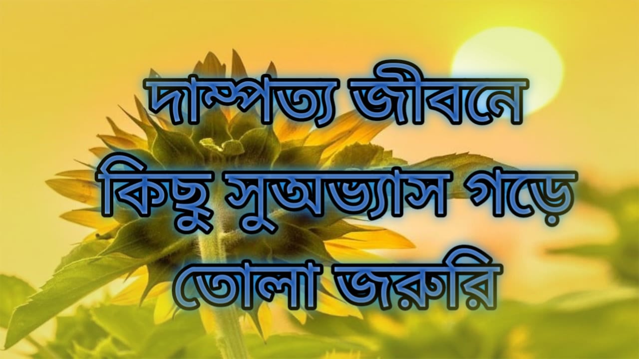দাম্পত্য জীবনে কিছু সুঅভ্যাস গড়ে তোলা জরুরি। আমাদেরকে মনে রাখতে হবে স্বামী-স্ত্রী উভয়ের সচেতনতা, প্রয়োজনীয় আন্তরিক পদক্ষেপ এবং পারস্পরিক ক্ষমা ও সহনশীলতার মধ্য দিয়ে অনেক সমস্যার শান্তিপূর্ণ সমাধান সম্ভব।