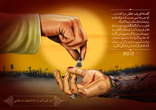 ঐতিহাসিকবিদগণ বলেনঃ যে ইমাম হুসাইন (আ.) নিজের জিহবাকে আলী আকবর (আ.) এর মুখে দিয়ে বুঝাতে চান তোমার বাবা তোমার চেয়েও বেশী তৃষ্ণার্ত।
